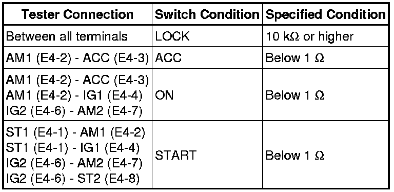 2ZR-FE STARTING: IGNITION SWITCH: INSPECTION; 2013 MY Corolla [07/2012 -]