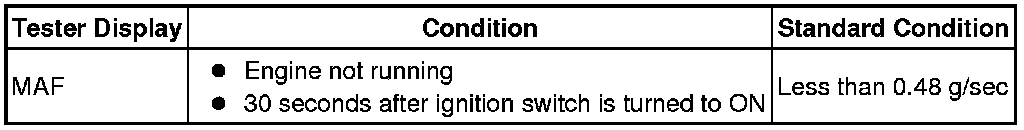 * Only replace the mass air flow meter when any foreign matter adheres to the sensor and both MAF values in the Data List (with the engine stopped) are not within the normal operating range.