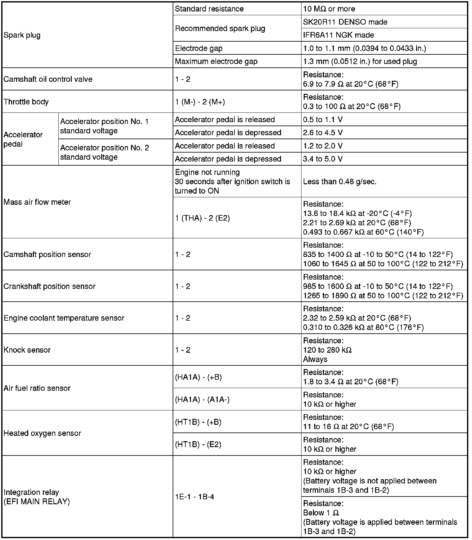 SPECIFICATIONS: 2AZ-FE ENGINE CONTROL: SERVICE DATA; 2013 MY Corolla [07/2012 -]