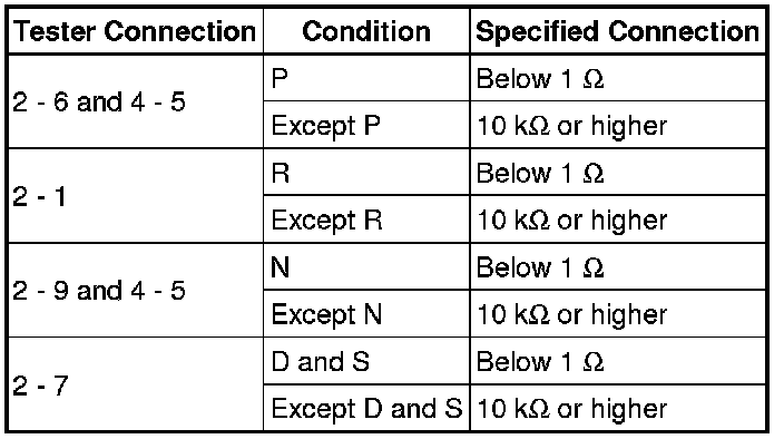 U250E AUTOMATIC TRANSMISSION / TRANSAXLE: PARK / NEUTRAL POSITION SWITCH: INSPECTION; 2013 MY Corolla [07/2012 -]