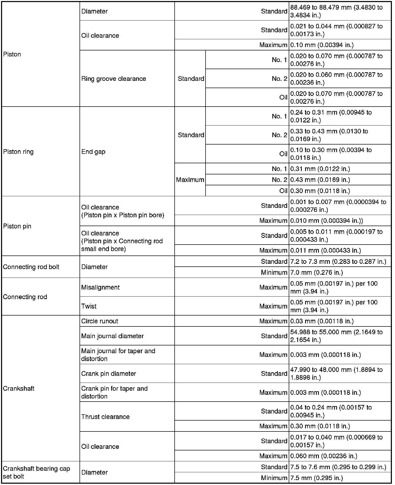 SPECIFICATIONS: 2AZ-FE ENGINE MECHANICAL: SERVICE DATA; 2013 MY Corolla [07/2012 -]