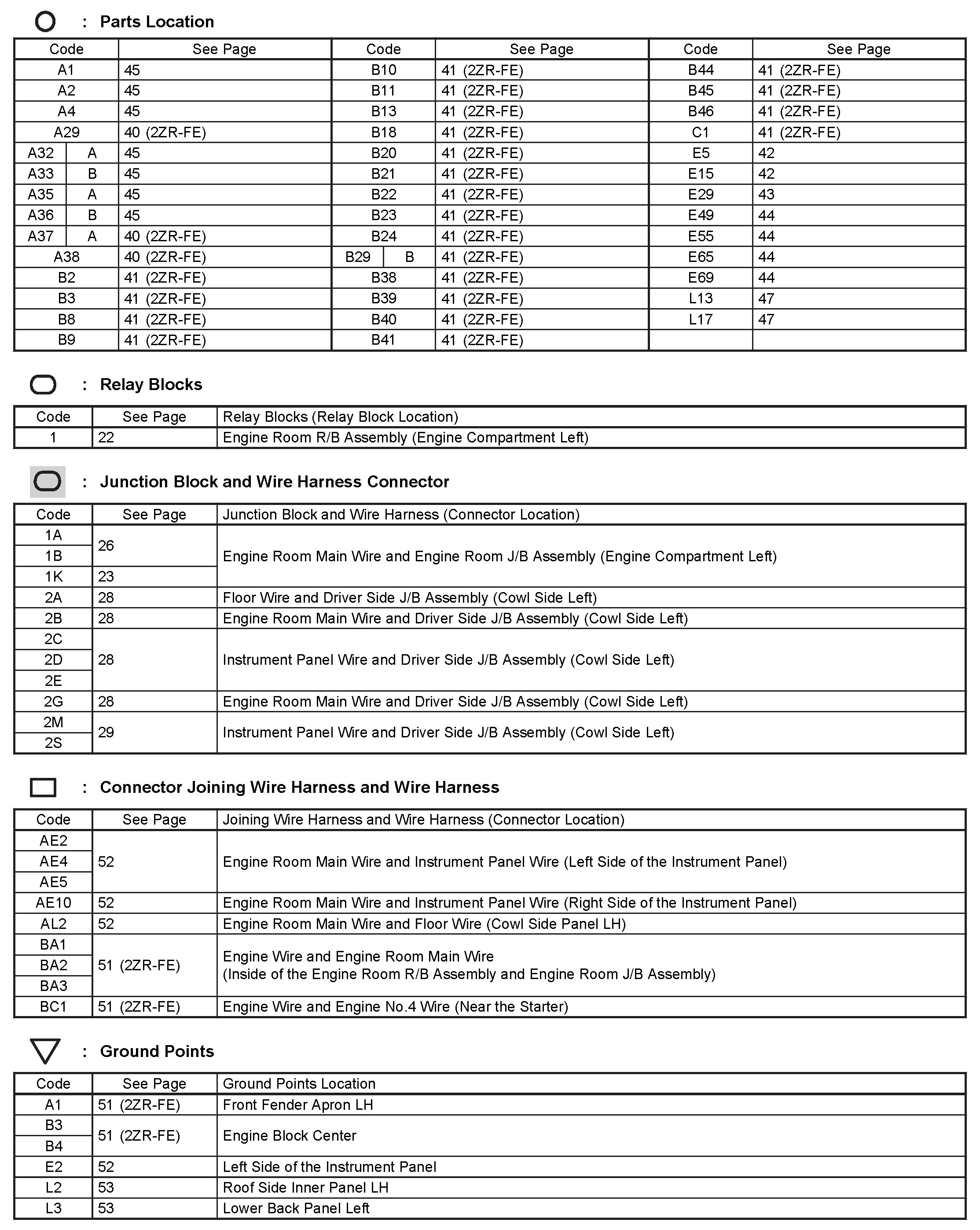 Locations: The locations of components, connectors, ground points, and splices referred to within these diagrams can be found at Vehicle Locations. Locations