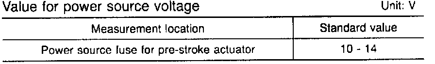 - Voltage is not as specified -> abnormality in power harness between power harness connectors, or pre-stroke cut relay abnormal -> repair or replace harness, or replace pre-stroke cut relay