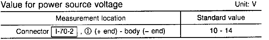 - Voltage is not as specified -> disconnection in harness between battery and fuse, battery abnormal -> repair harness or check battery