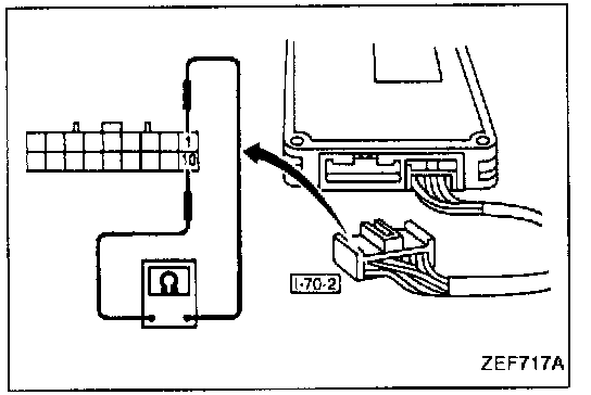 2. Measure the resistance between terminals (1) and (10) of harness connector [I-70-2].