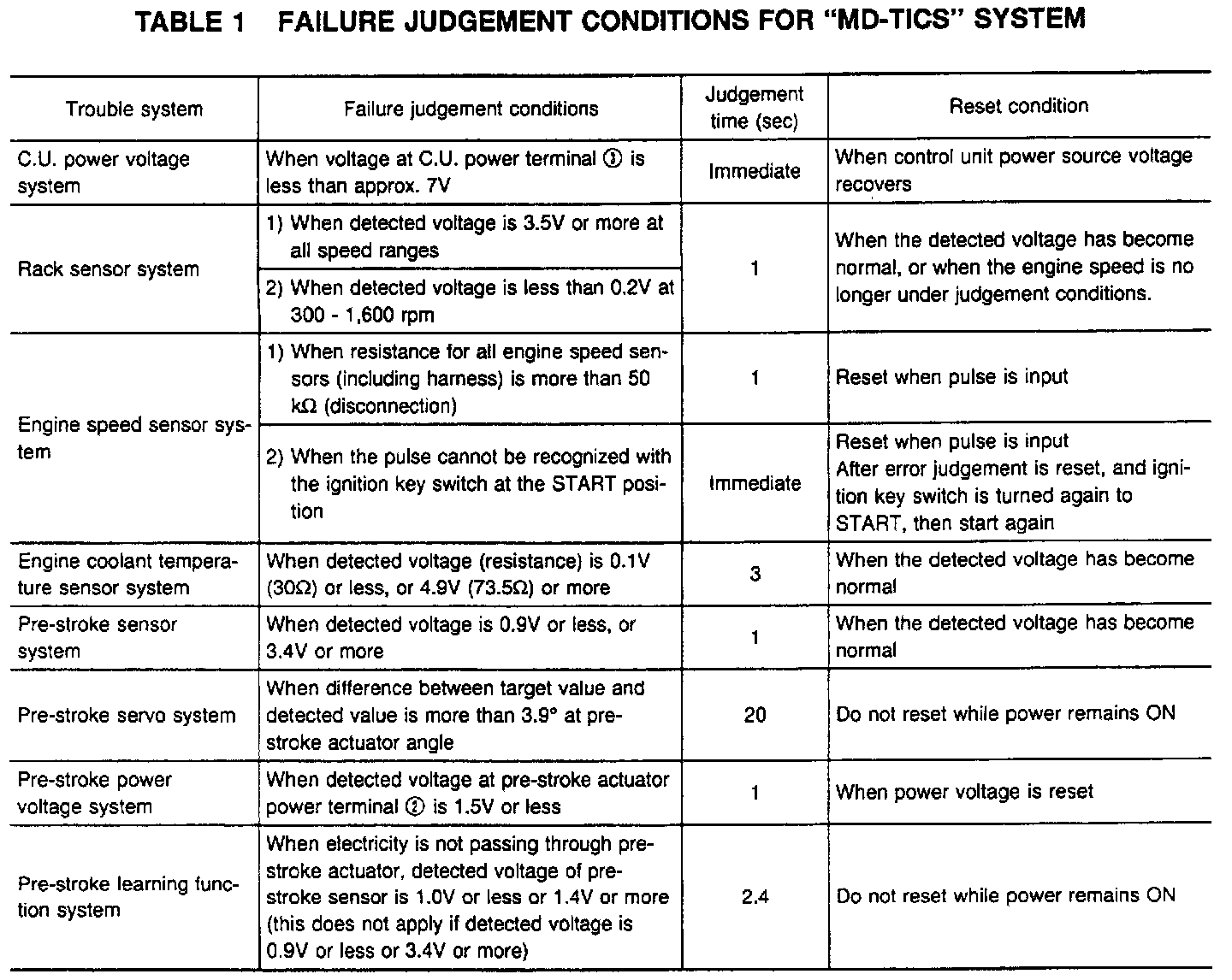 Table 1 Failure Judgement Conditions For "MD-TICS" System