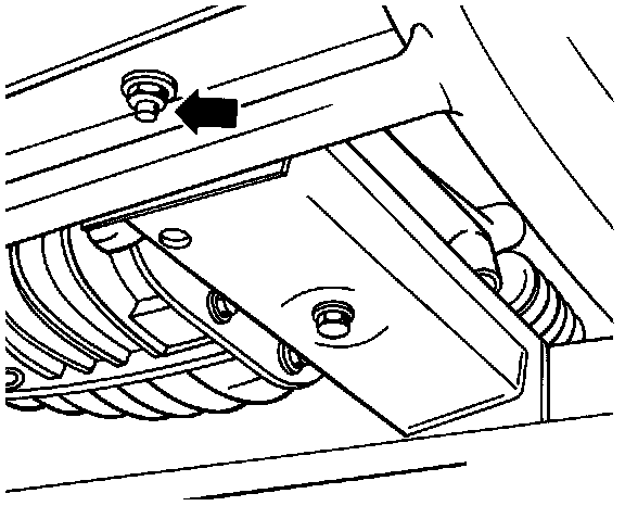 - Loosen mounting bolt of front final drive (arrow). Do NOT remove bolt