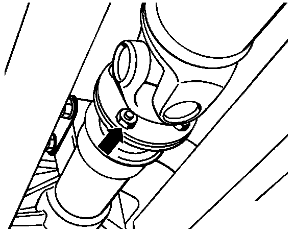 - Remove bolts at front driveshaft flange (arrow) and tie driveshaft end to skid plate