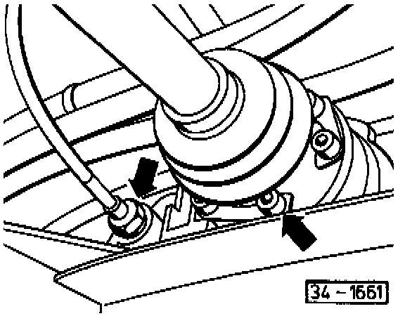 - Remove bolts from front mounting (arrows) and take bracket out by pulling forward