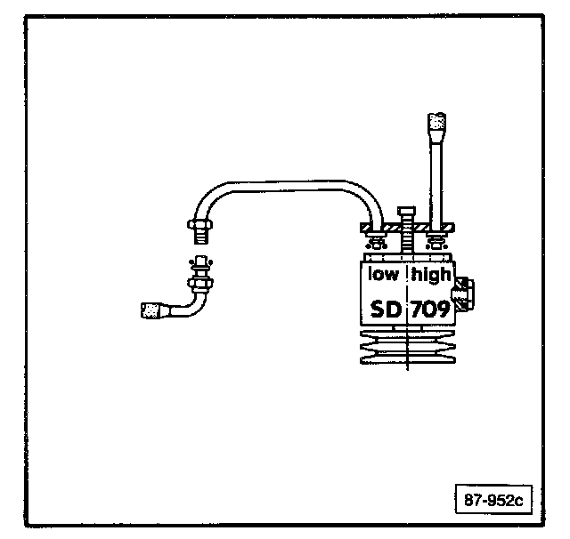 Note: As of VIN HH 056 819, all Vanagon vehicles are equipped with the Sanden SD 709 A/C compressor. Use the following procedure when replacing the model SD 510 with the model SD 709.