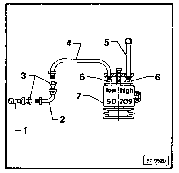 Fig. 3 A/C compressor SD 709 installation (conversion from SD 510)