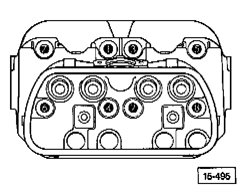 - First stage: tighten cap nuts in numbered sequence to 10 Nm (7 ft lb)