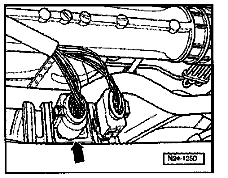 - Disconnect 6-pin harness connector to Heated Oxygen Sensor (HO2S) -G39- (arrow).