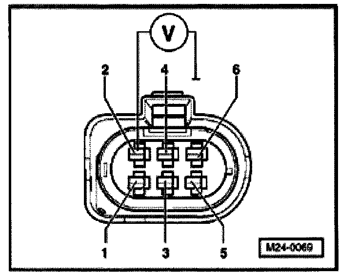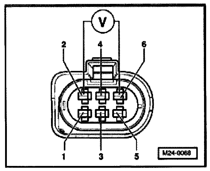 - Connect multimeter to terminal 2 + 6 of connector to make voltage measurement.