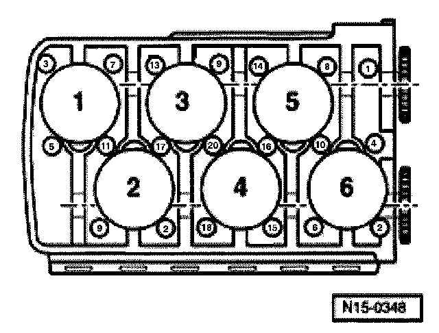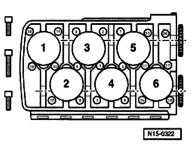 Loosen and unscrew cylinder head bolts in specified sequence.