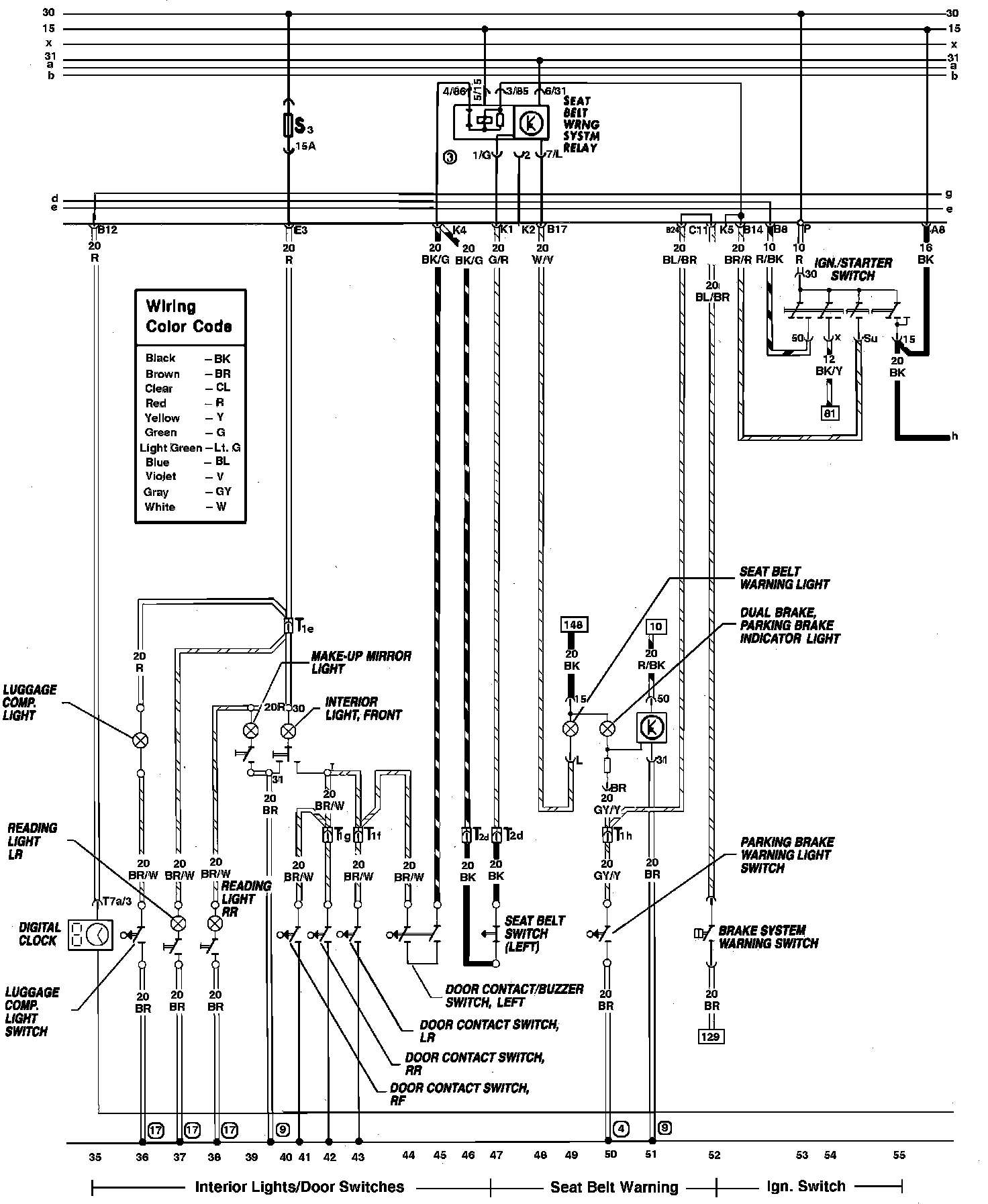 Brake, Seat Belt Warning, Clock, Door Contact Switch, Ignition Switch, Interior, Luggage Compartment & Reading Lights: