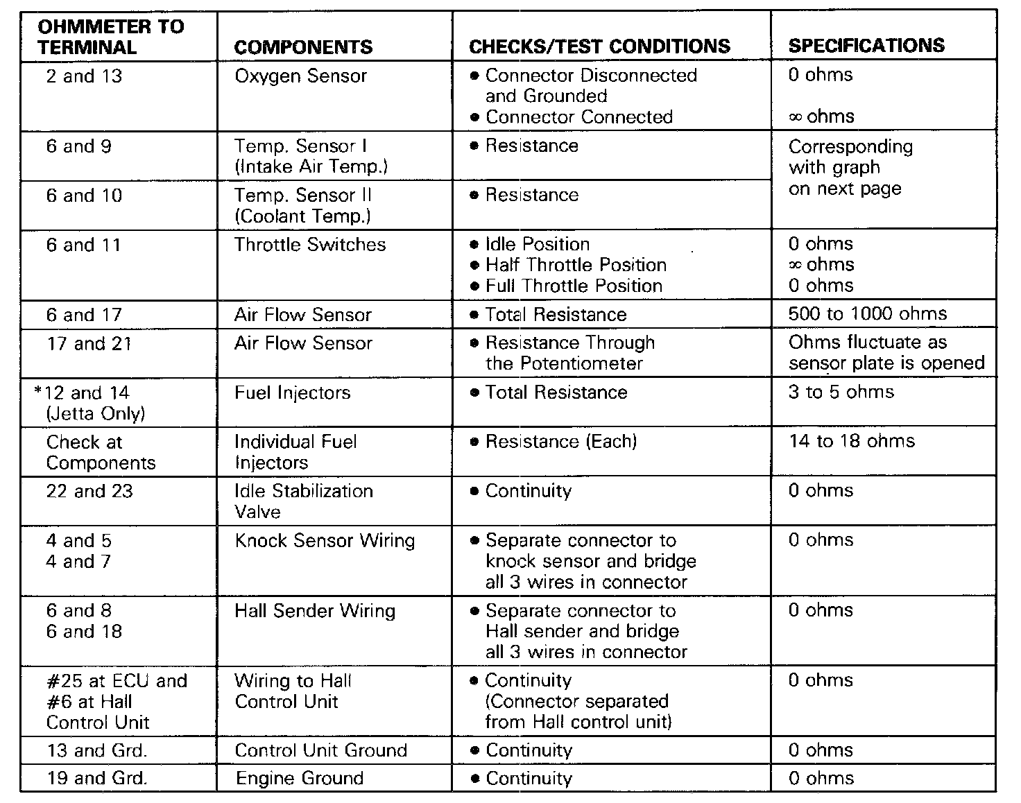 System Check With Volt/Ohmmeter (Digifant II)Requirements