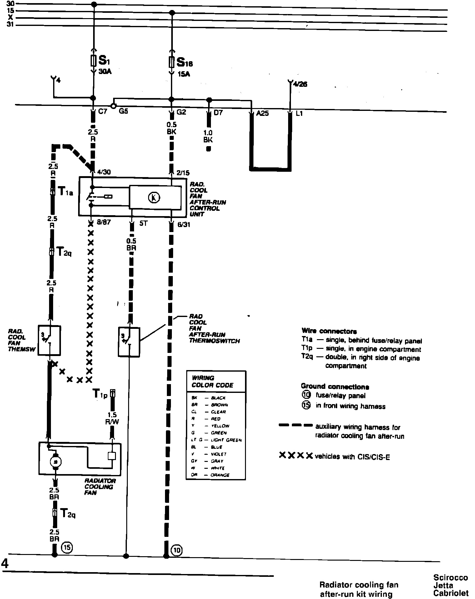 On vehicles experiencing hot starting difficulties, install radiator cooling fan after-run kit Part No. 191 998 215