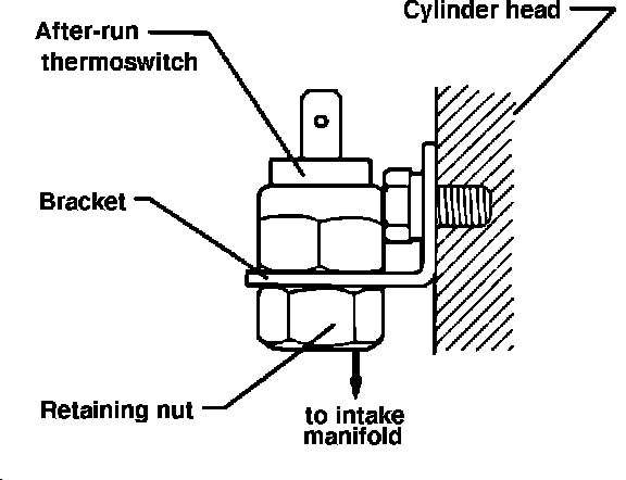 - mount temperature switch and bracket with 6.0 mm bolt in available threaded hole on cylinder head between cylinders one and two (Fig. 2) (arrow)