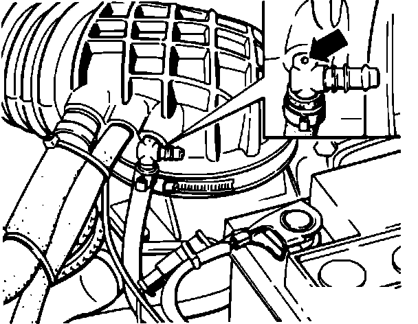 7. Remove the charcoal canister line "T" fitting from the air flow sensor boot, rotate the "T" 90° and reinstall with blank port (0.059 in. /1.5 mm) back into the boot. If the car is not equipped with the "T" fitting, remove the hose and fit a restrictor plug with a 0.059 in. (1.5 mm) hole. Such a plug is available from VOLKSWAGEN.