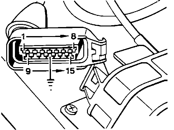 8. Connect a voltmeter between coil terminals 1 (-) and 15 (+).
