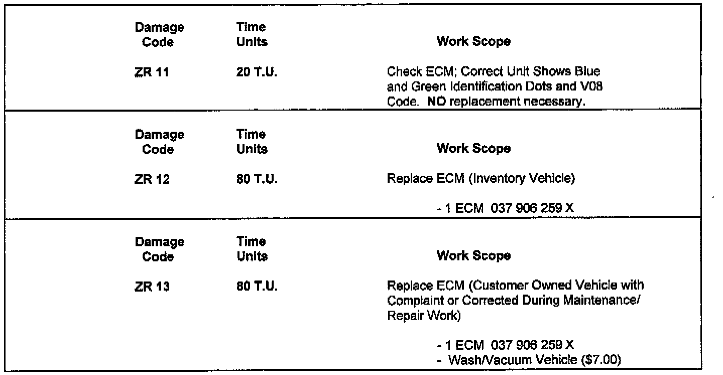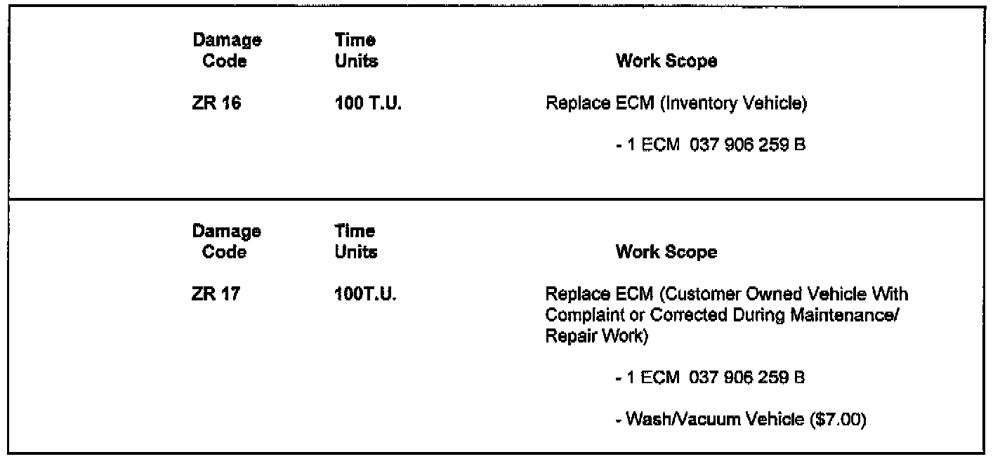 Only replacement ECM's, part number 037 906 259 X, will have a core value. Cores must be returned within 60 days of invoice or dealer will be charged for corn value.