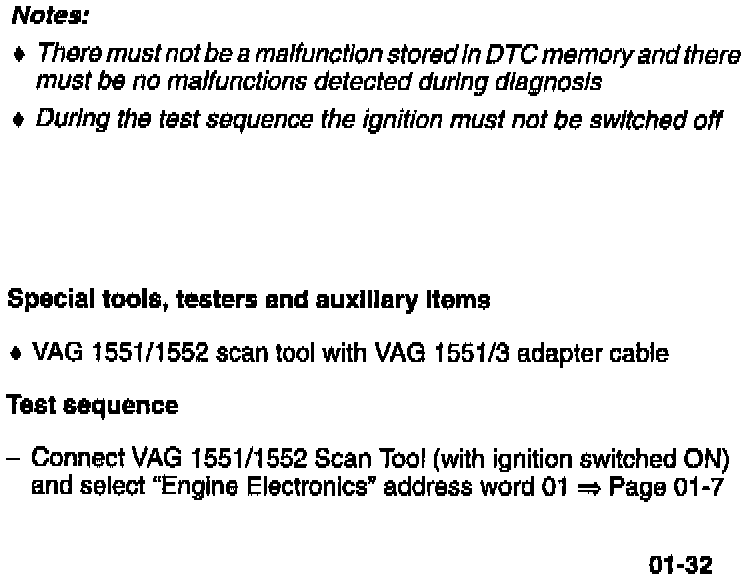 To display Readiness Codes the VAG 1551 Scan Tool must meet the following requirements: