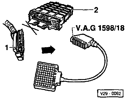 - Connect VAG 1598/18 test box to wiring harness connector.