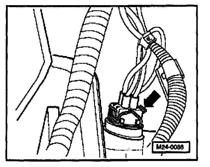 - Pull the 4 pin connector oft Engine Coolant Temperature (ECT) sensor (G62) with coolant temperature gauge sender (G2) - arrow-.