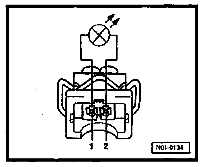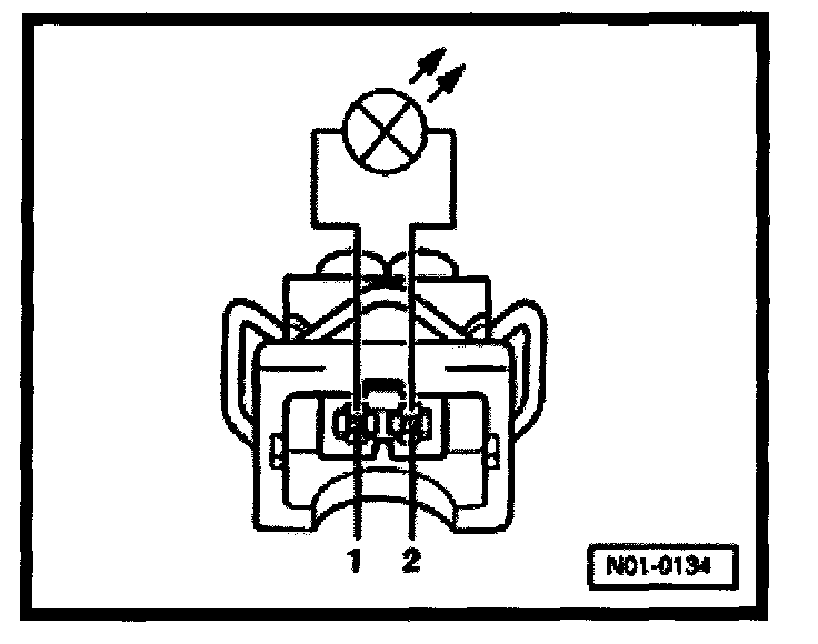 - Connect diode test lamp V.A.G 1527 using adapter cables from V.A.G 1594 to detached connector.