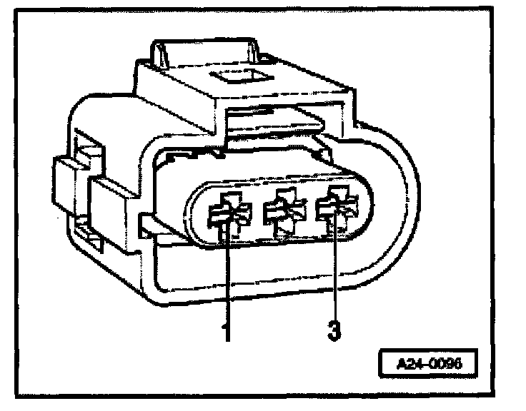 - Connect diode test lamp V.A.G 1527 between detached connector contacts 2 and 3 using adapter cables from V.A.G 1594.