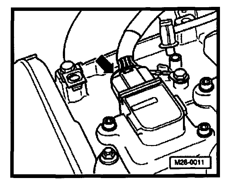 - Pull 4 pin connector -1- off power output stage for ignition coils (arrow).
