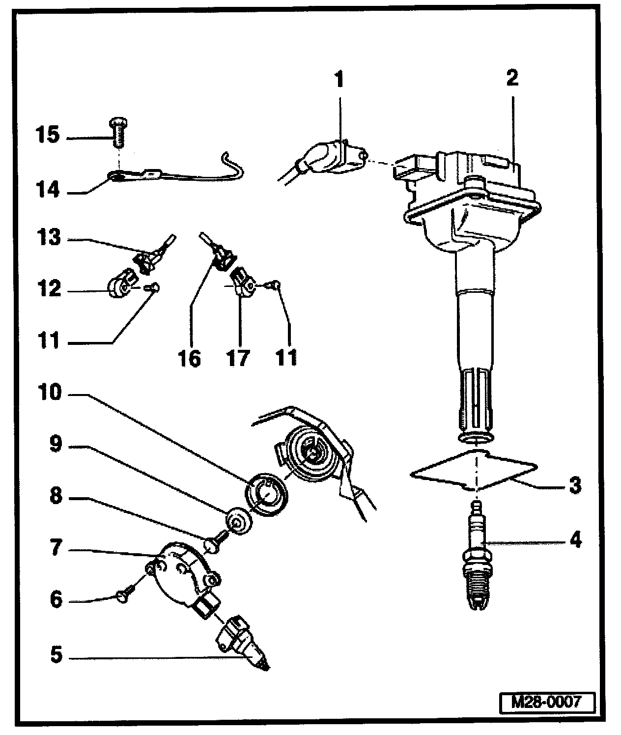 2 - Ignition coils with power output stages (N70, N127, N291, N292)