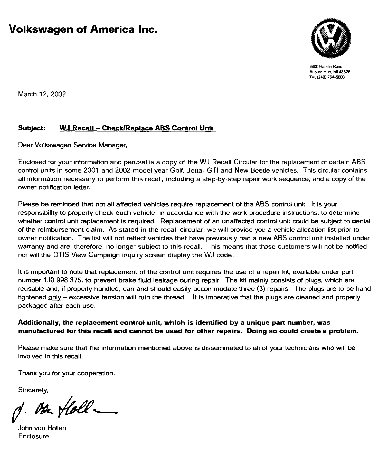 Recall - ABS Control Unit Replacement