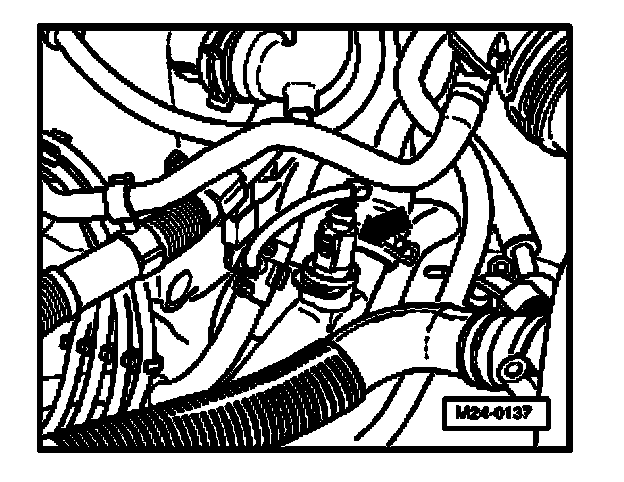 - Disconnect 4-pin connector from Engine Coolant Temperature (ECT) sensor -G62- with Engine Coolant Temperature (ECT) sensor -G2- (arrow).