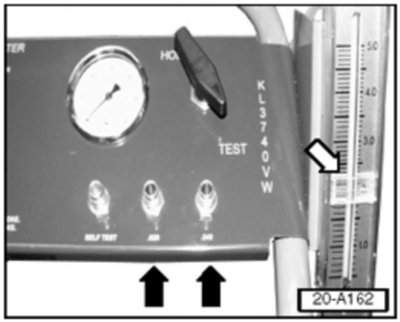 - Set flow meter flag (white arrow) at indicated value on flow meter.