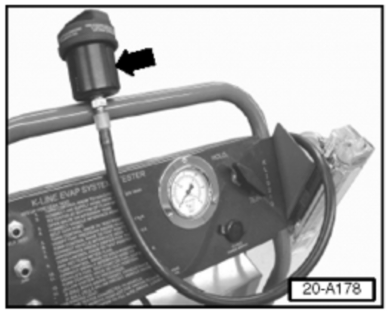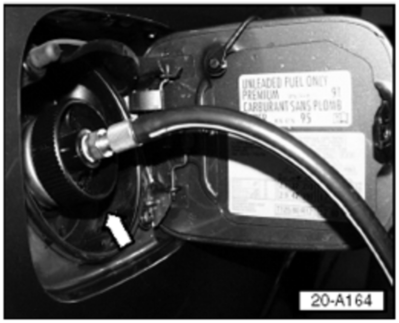 - Tester hose connected to fuel filler neck