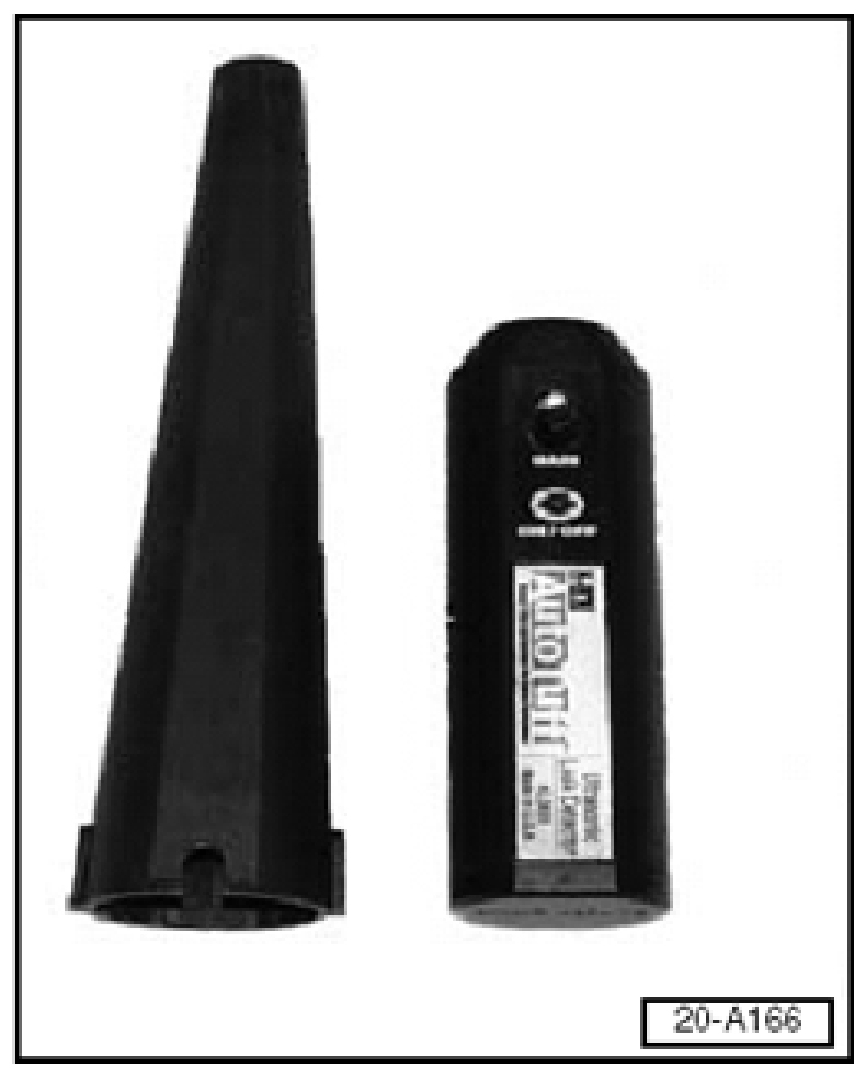 Basically, in the following procedure the EVAP system will be filled with smoke, the engine started and the LDP activated using the VAS 5051 or VAS 5052. With the LDP activated, and after clearing initial smoke away from the LDP area using compressed air, the system is then filled with smoke again and rechecked for smoke at the LDP filter.