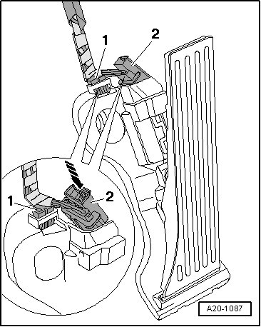 - Disconnect the Throttle Position (TP) Sensor (G79)/Accelerator Pedal Position Sensor 2 (G185) electrical harness connector - 2 -.