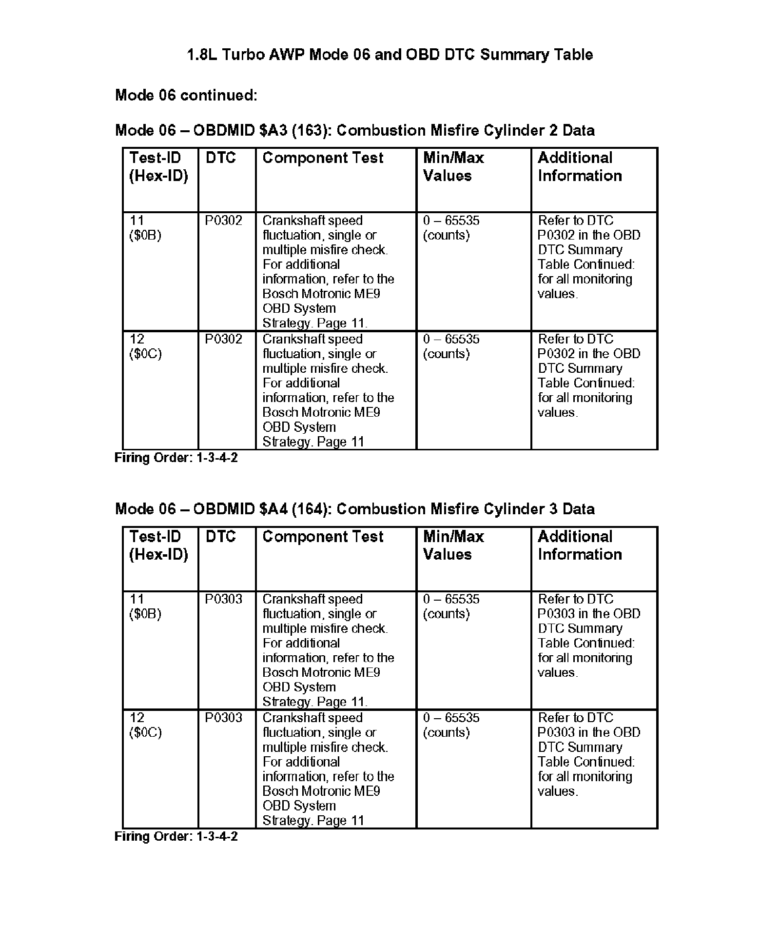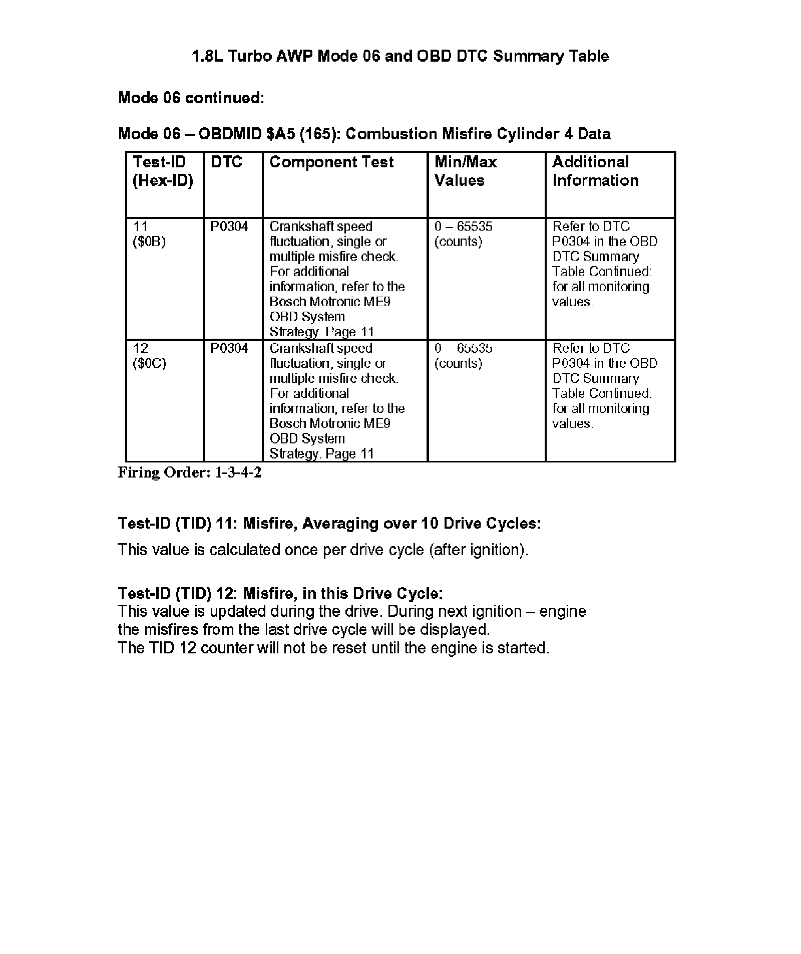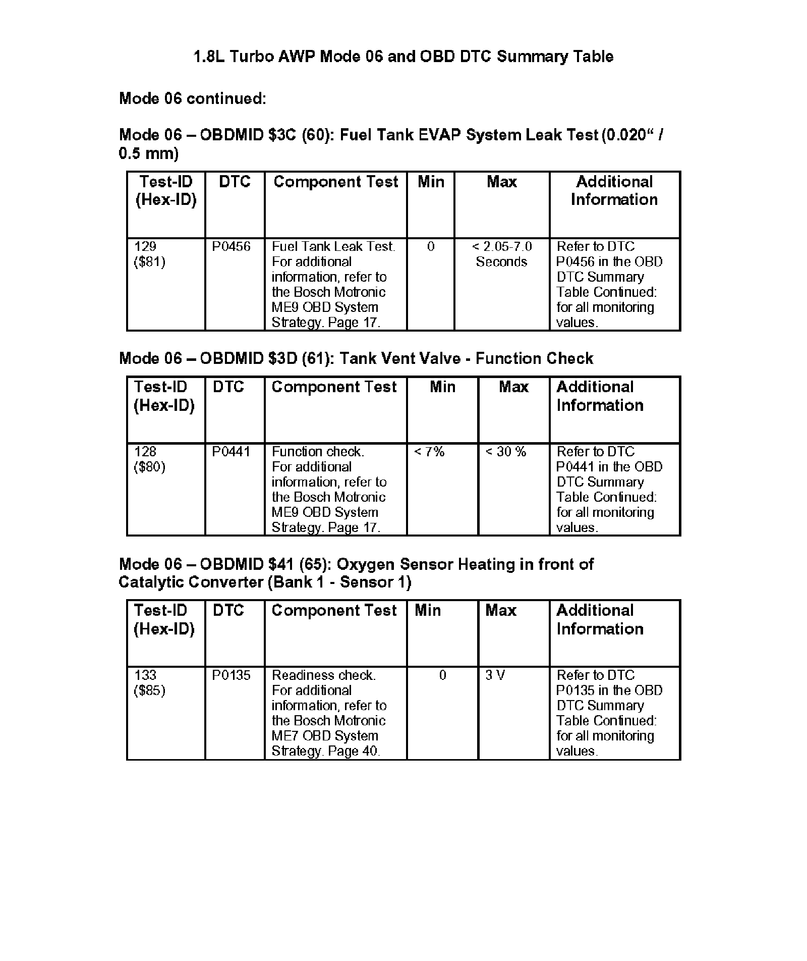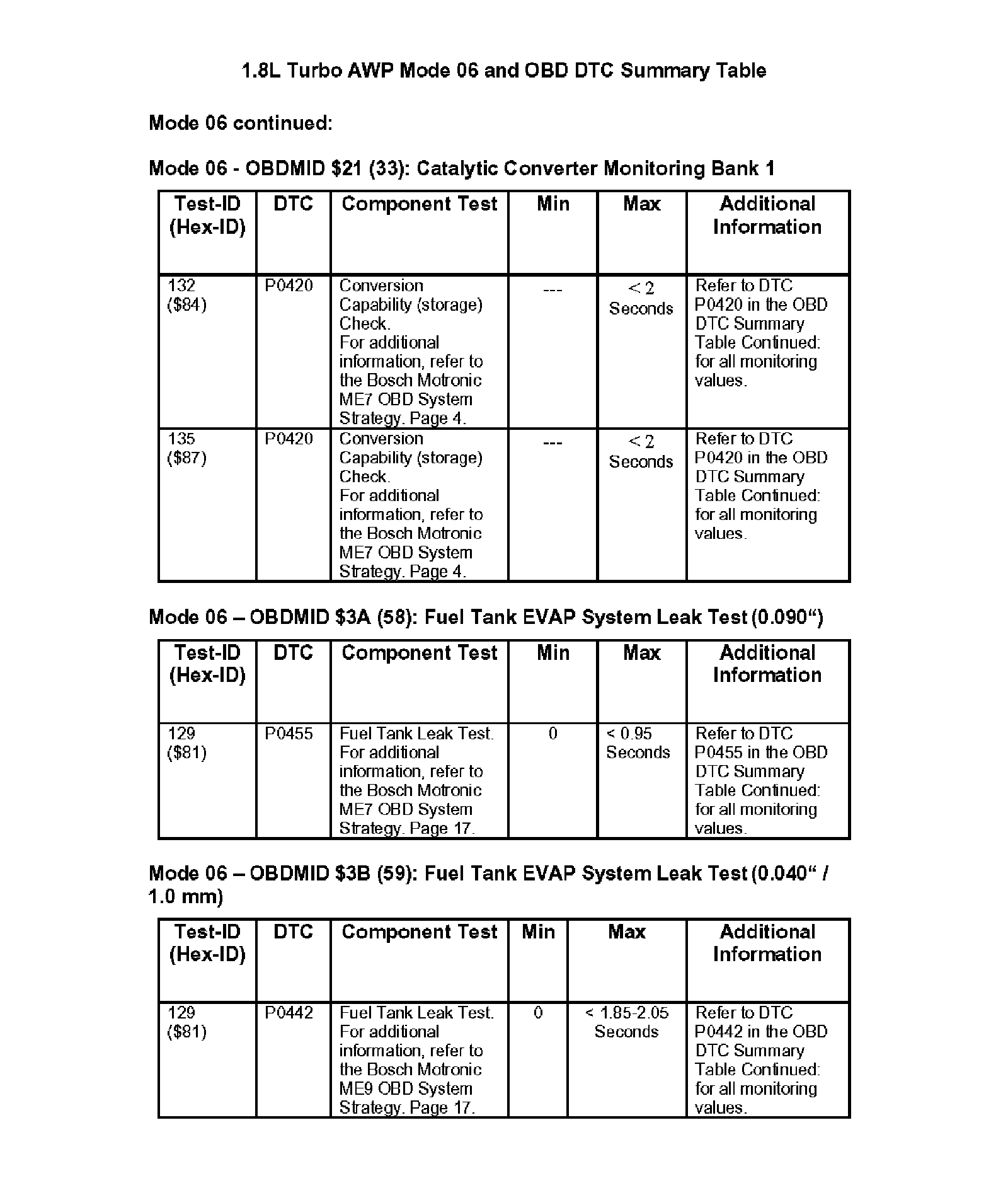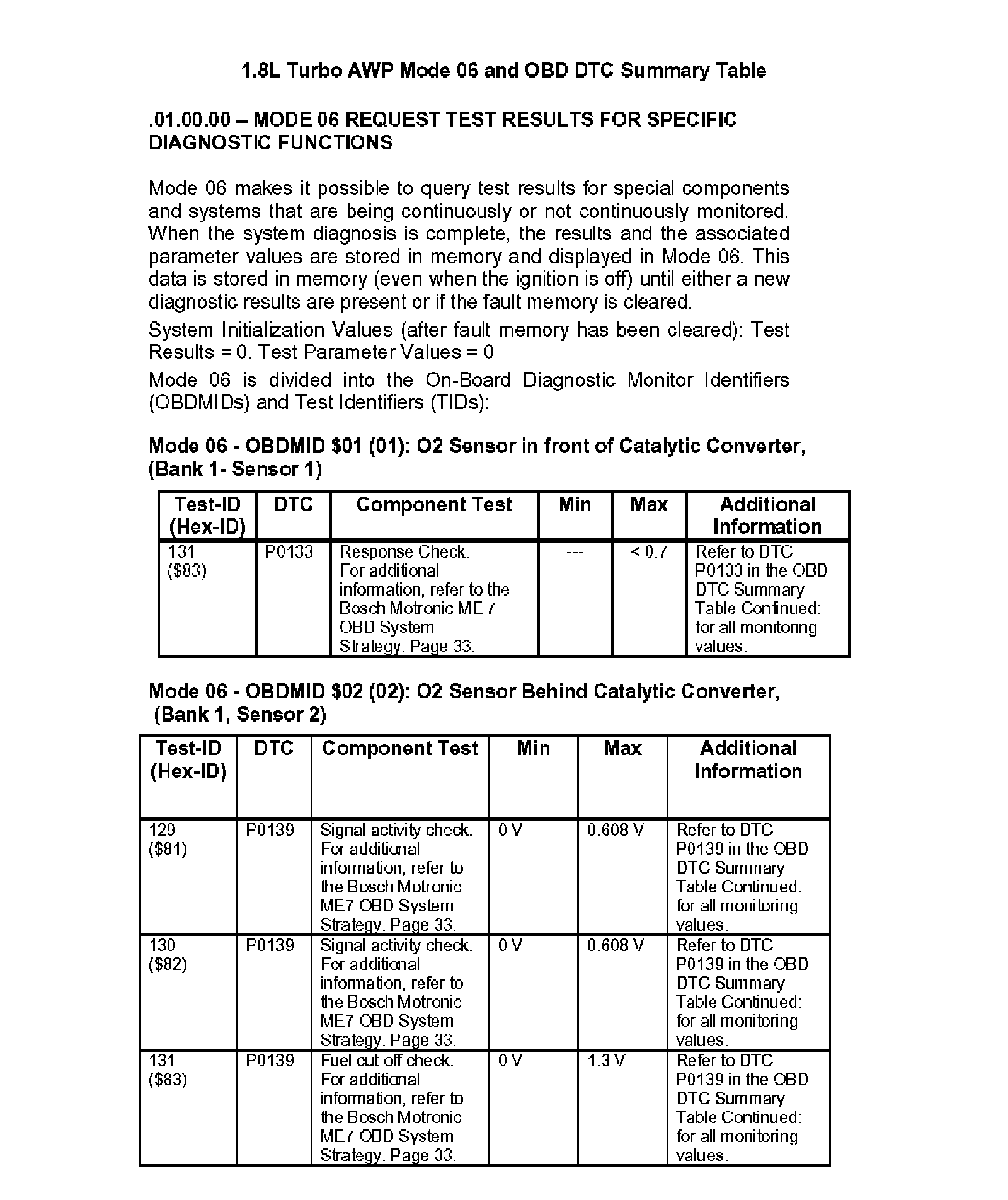 Modes 05/06 and OBD DTC Summary Table