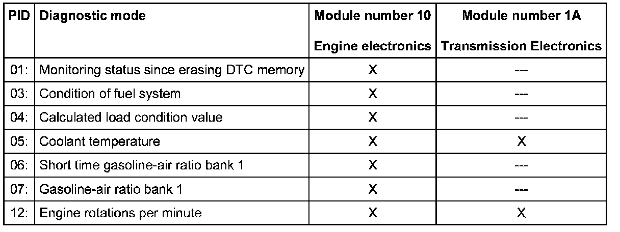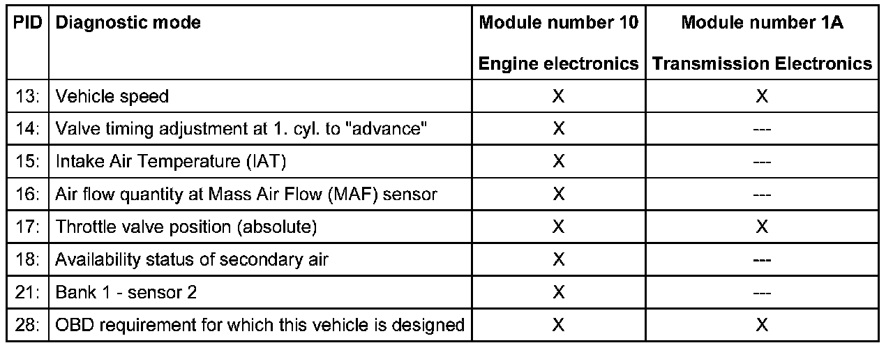 - The measuring values are sorted according to the PID (parameter-identifications).