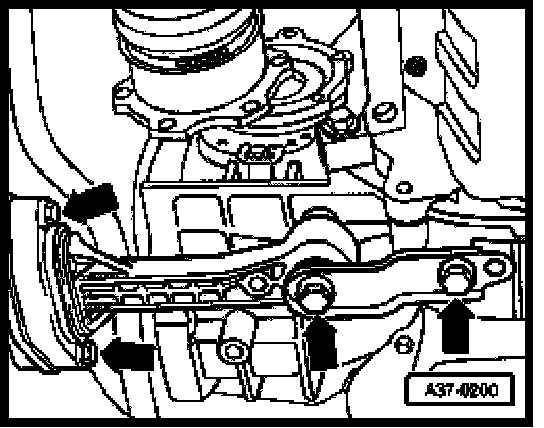 - Remove mounting bolts (arrows) for pendulum support and remove pendulum support.