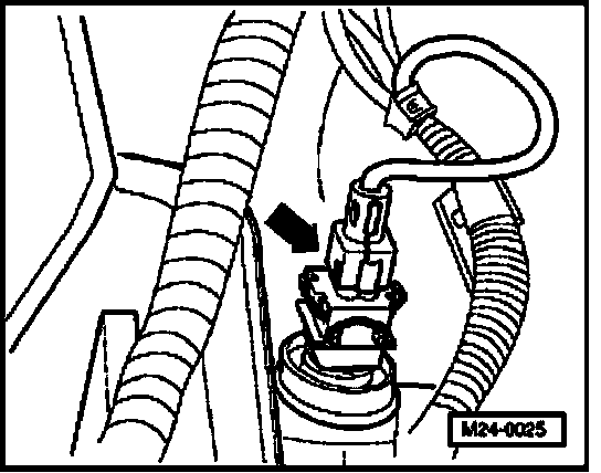 - Disconnect 4-pin connector from Engine Coolant Temperature (ECT) sensor -G62- with Engine Coolant Temperature (ECT) sensor -G2- (arrow).