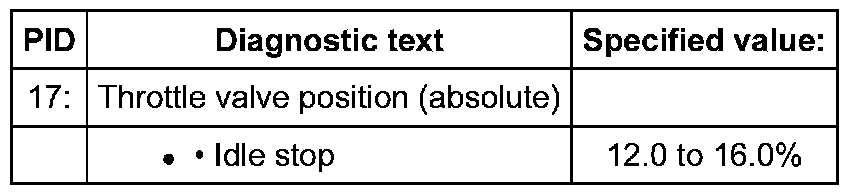 - Check specified value of throttle valve position (absolute) at idle stop: