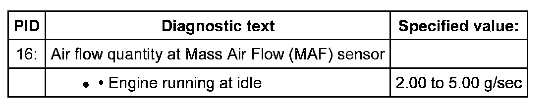 - Select the measuring value "PID 16: Air flow quantity at Mass Air Flow (MAF) sensor".