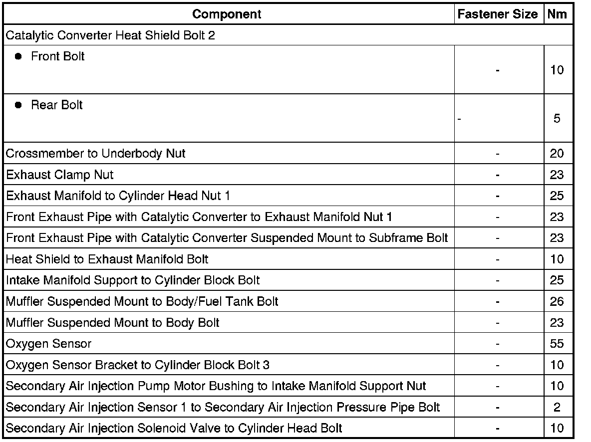 Secondary Air Injection Pipe Bolt Tightening Sequence and Specification
