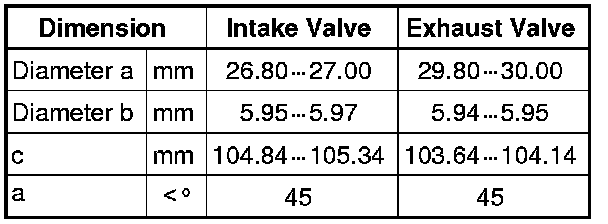 Intake and exhaust valves must not be refaced by grinding. Only lapping is permitted.