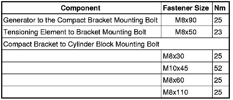 Generator Compact Bracket Tightening Specifications, 2.5L