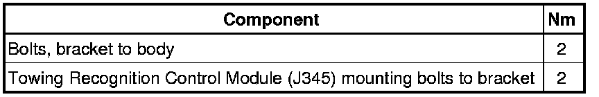 Towing Recognition Control Module, Tightening Specifications