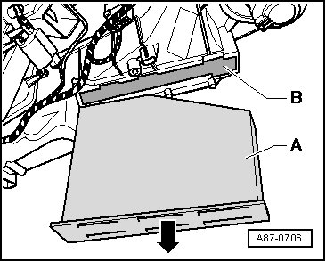 - Remove filter element - A - from shaft - B - of air conditioner or heater.